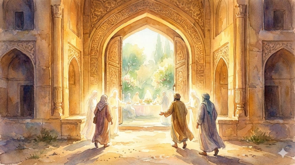 In the third, we arrive at the banquet — because God has not invited us to the month of Ramadhan to starve us but to feed us with light and recognition.
