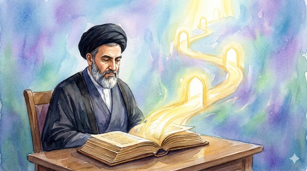 Allamah Tabatabai, in his Lubb al-Lubab (The Innermost Essence), maps out the stages of that journey with the precision of a cartographer — surrender, faith, migration, struggle — and tells us that the destination is nothing less than union with God.