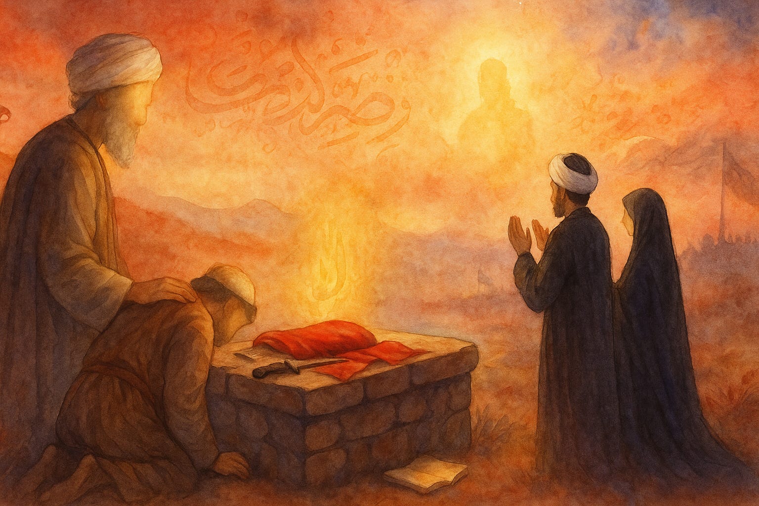 The Qur’an, in Surah al-Saffat, recounts the trial of Prophet Abraham: his vision to sacrifice his son, their joint submission, and God’s intervention.