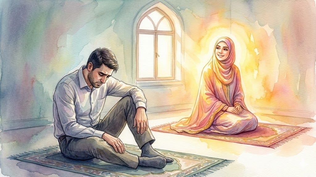 A moment in sajdah where something shifted and the chest opened and for one breath — one single breath — we were not performing worship.