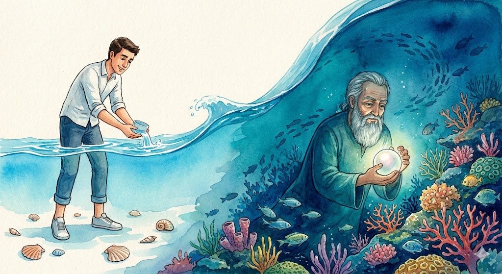 He argues that there is a vast chasm between knowing and becoming — between the perception of a concept and the transformation of the soul.