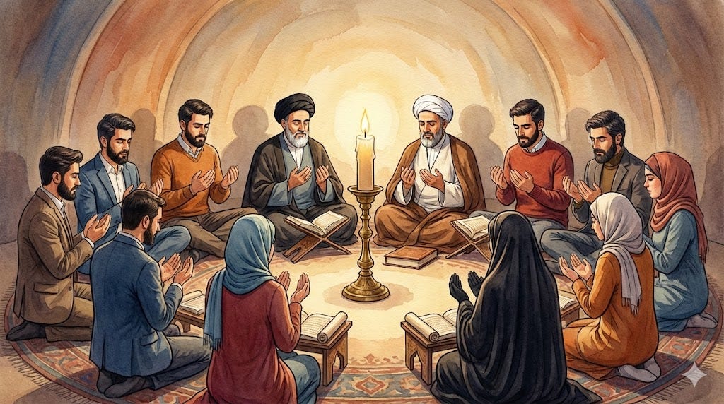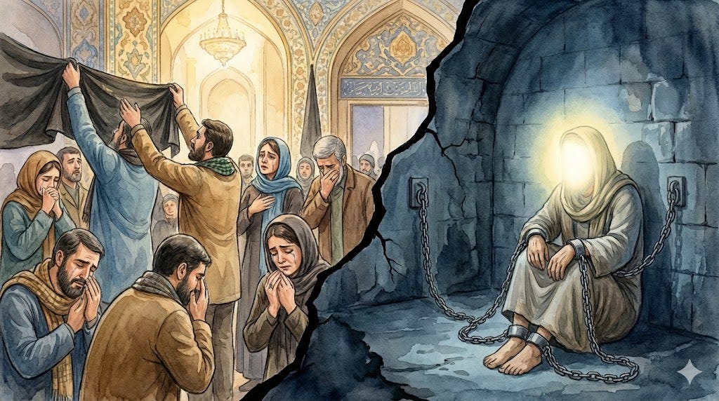 And the Shia held gatherings for the martyrs of the past—while their living Imam was being martyred in the present.