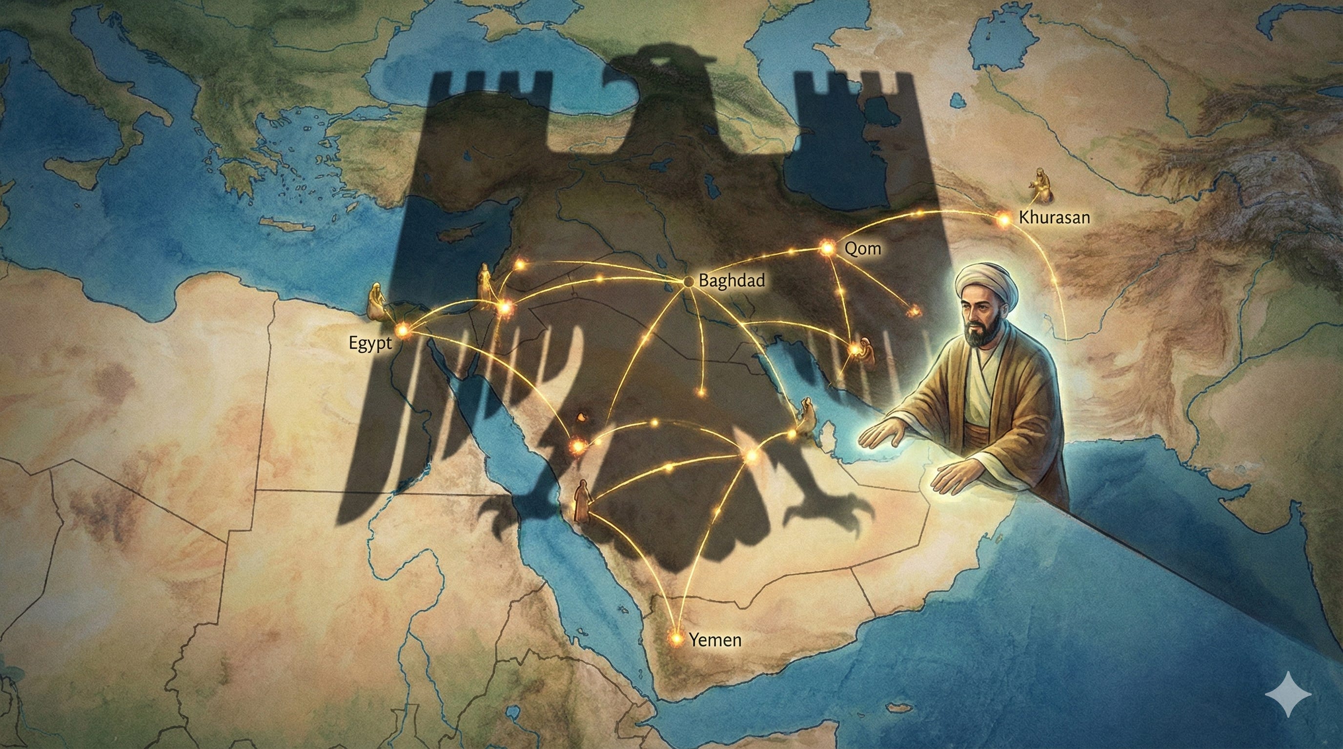 Operating under the nose of a hostile surveillance state—mastering the art of Taqiyyah (Strategic Prudence) to the point where he appeared publicly as a respectable Sunni notable while serving secretly as the Gate to the Hidden Imam—he managed a network of agents spanning from Qom to Yemen, from Egypt to Khurasan.
