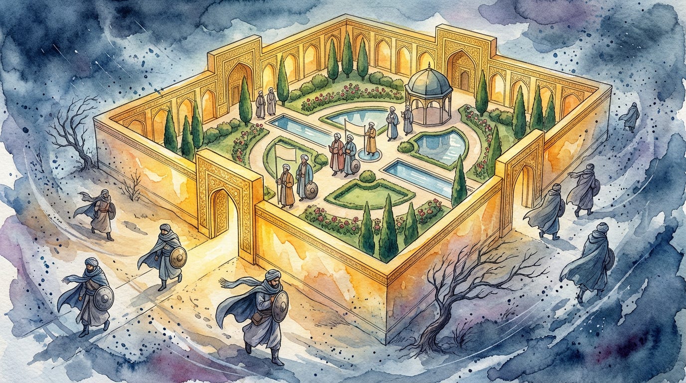 We will trace the historical record — from the Era of the Imams, through the Hasan-Husayn spectrum, to the Safavid transformation — asking how the Shield was carried, and when it was finally lowered.