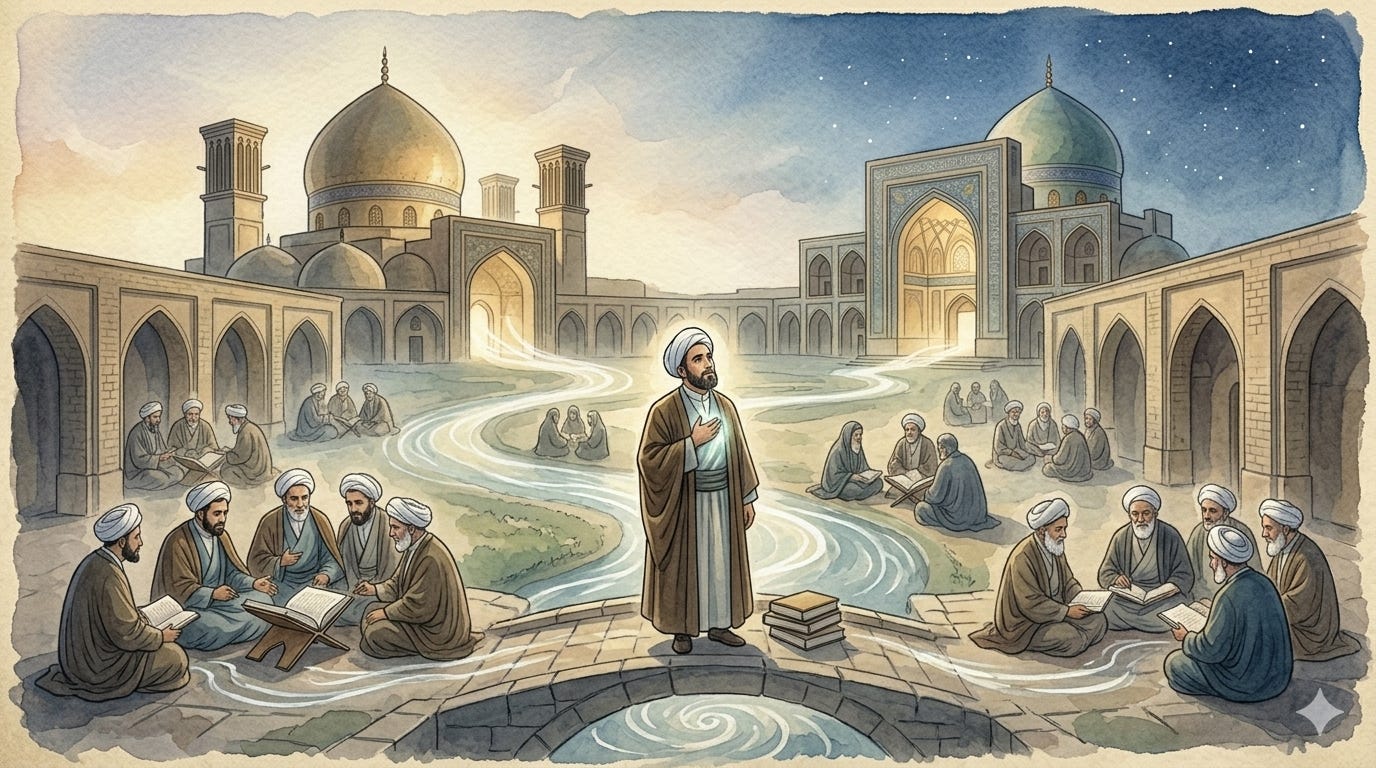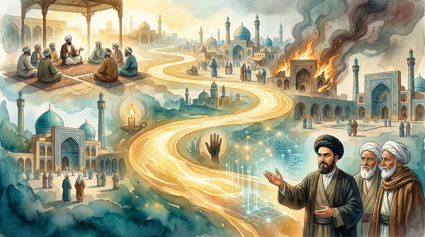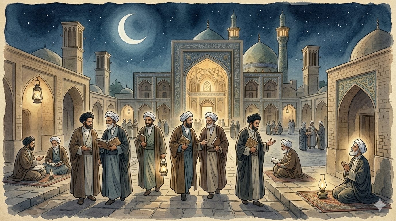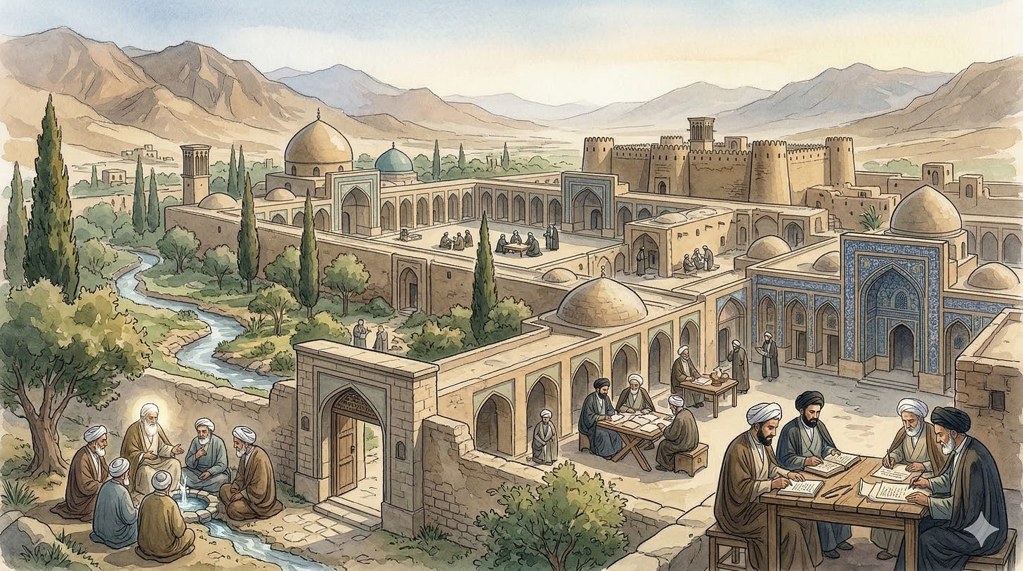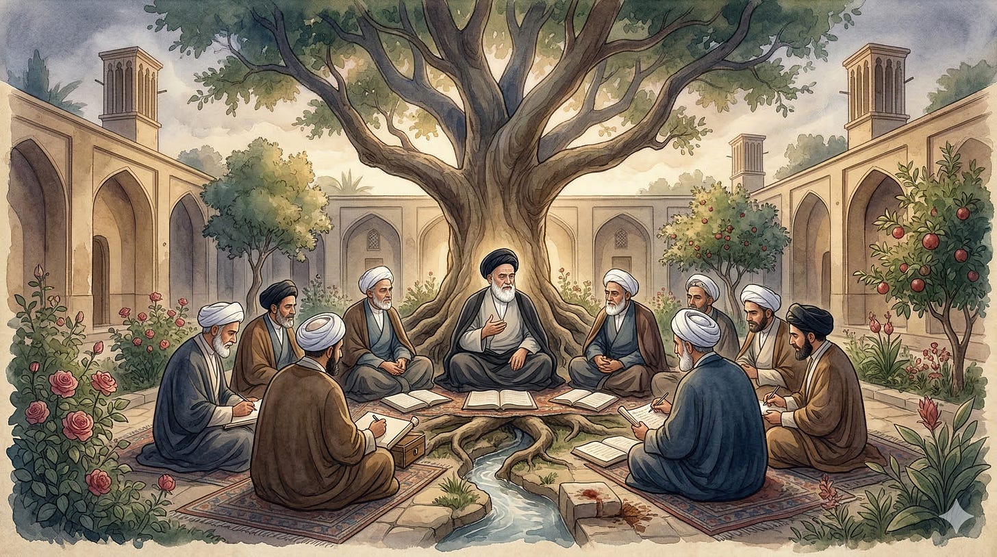 This is the story of the Hawza — the seminary, the garden, the protected enclosure of knowledge.
