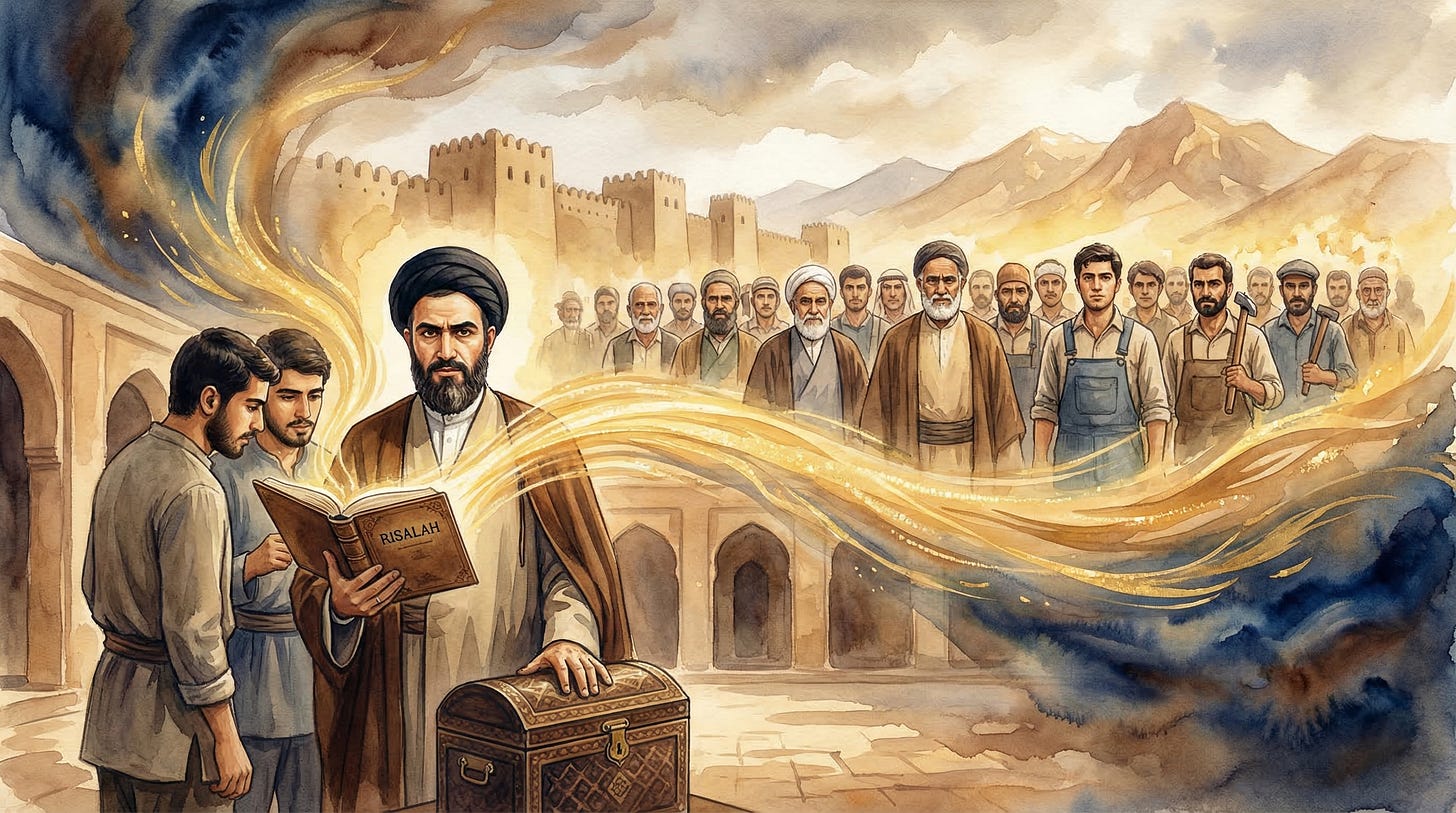And that discussion will not begin where most begin — with Imam Khomeini, may God elevate his station — but where it must begin: with the Wilayah of God Himself, flowing downward through the Prophet, the Imams, and finally to the Faqih.