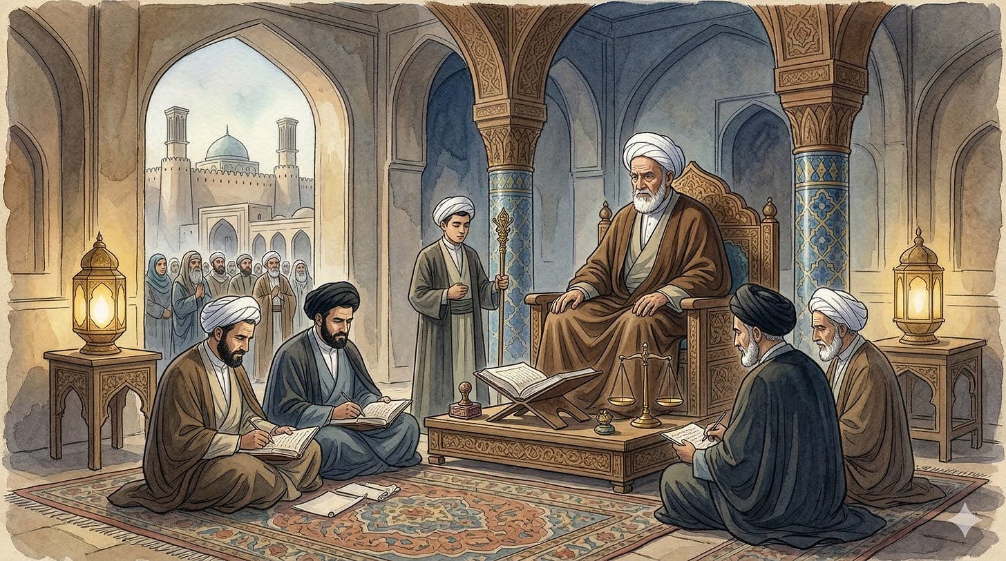 The concept of the Hakim Shar’i (the jurist as judge and governor), the historical reality that Maraji’ maintained their own enforcement mechanisms to uphold the Shari’ah within the territories of empires, and how this institution evolved from a scholarly advisory role into a comprehensive system of communal governance.