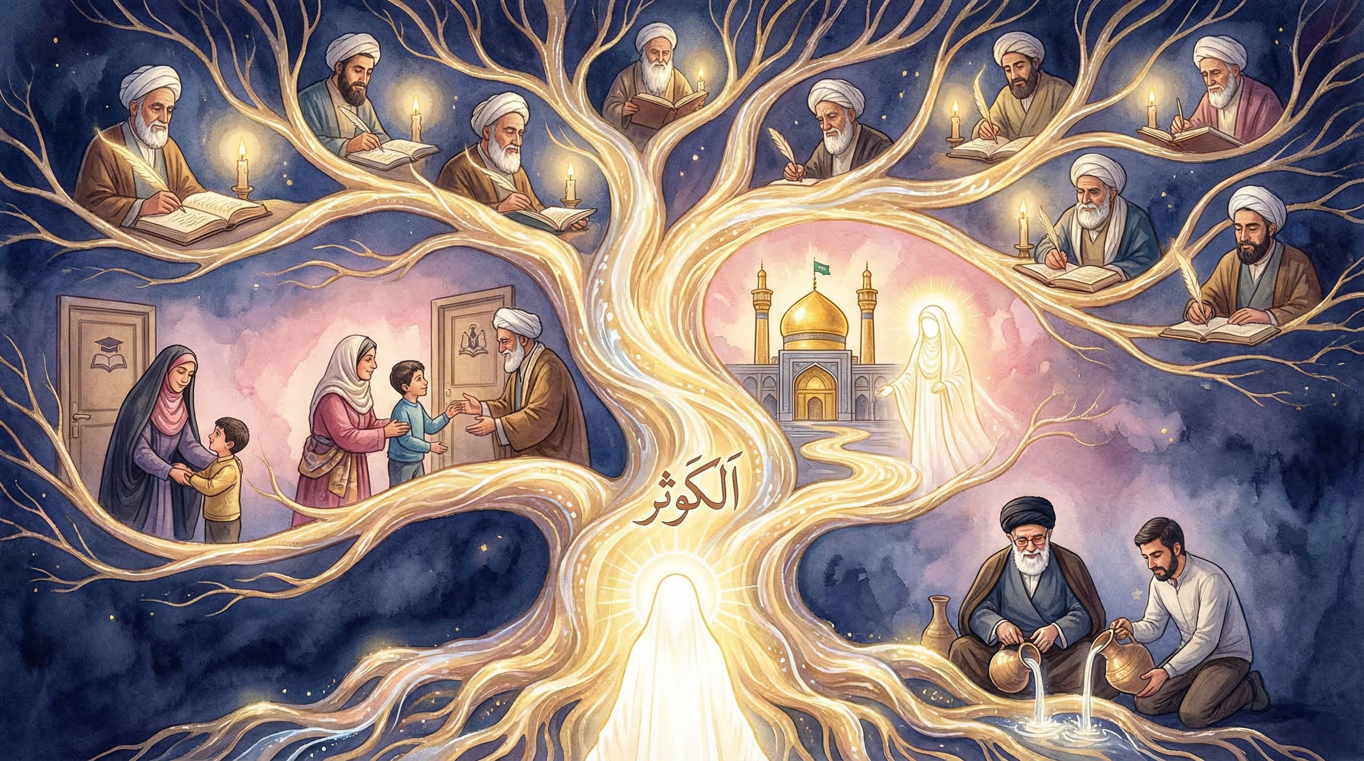 We turn from the Shield to what the Shield protects — the living, breathing Architecture of Guidance that the scholars of the Ahl al-Bayt constructed, stone upon stone, generation after generation, through the longest night in the history of any community on earth.