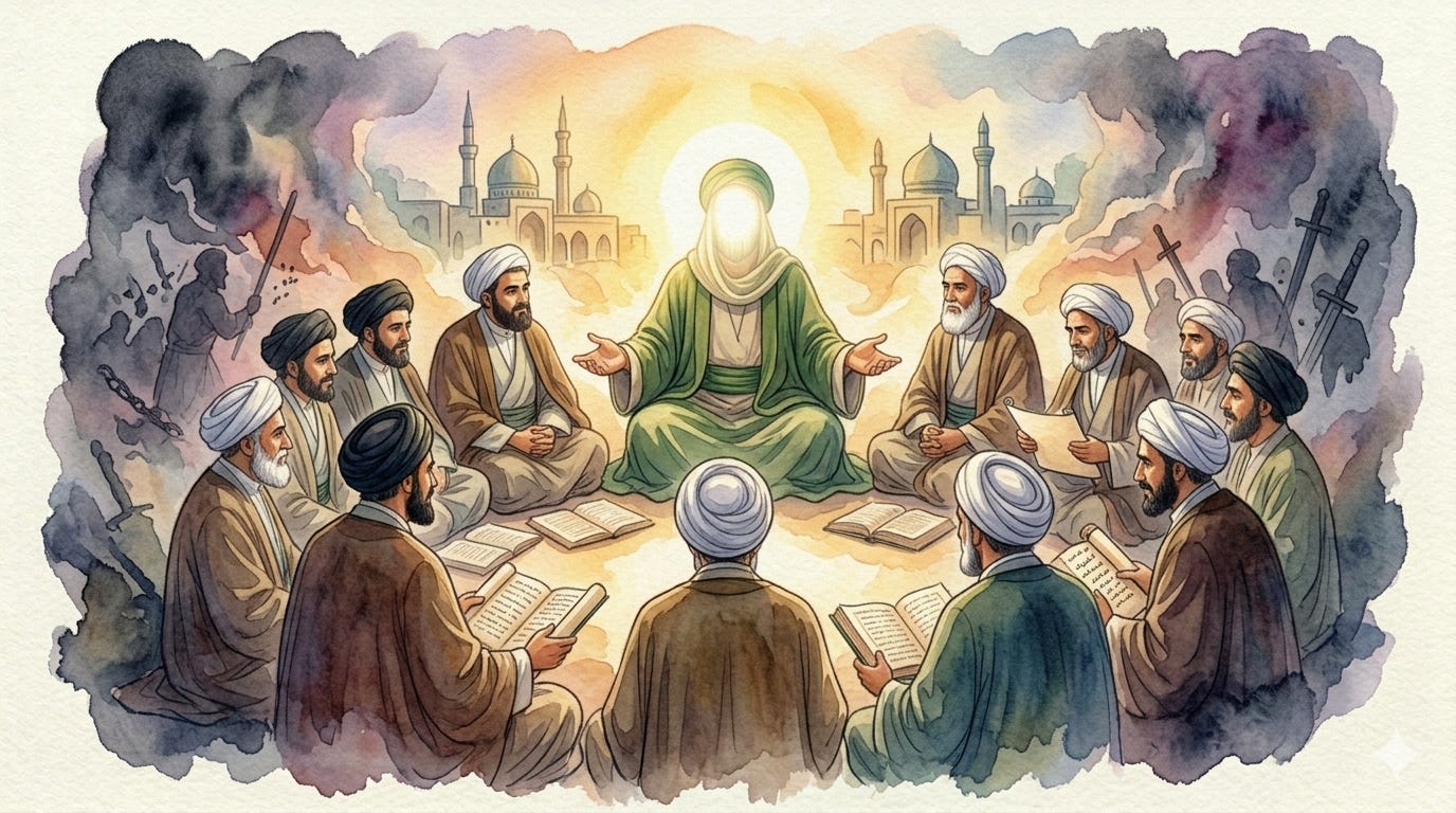 A room where a man sat — not a professor, not an academic, not a cleric in any sense we would recognise — but a living, breathing Hujjah: a divinely appointed Proof of God upon His creation.