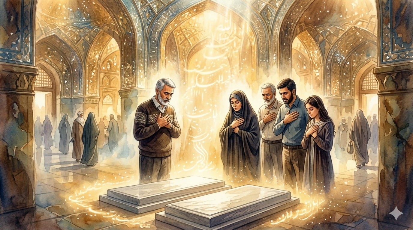 And let us stand, in the stillness within, at two graves laid side by side — a young scholar laid beside his father, the Naqib who had walked the Alid community of Baghdad through seven turns of his office and now lay at rest beside the son who had inherited it from him.