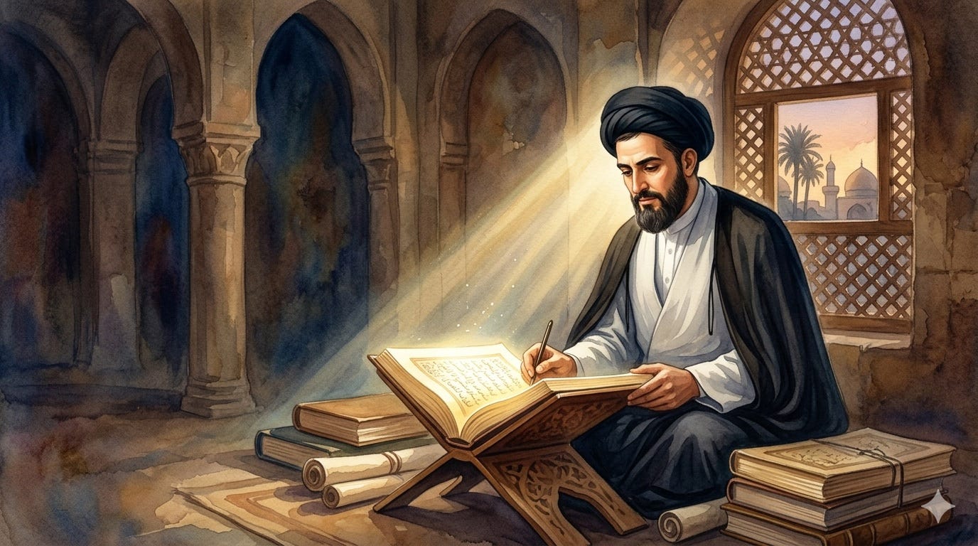 We will walk through his library of eighty thousand handwritten manuscripts — and we will meet the four students he dispatched, from Baghdad, to plant the seed of his teaching in soil that fire could not reach: in Tripoli, in Aleppo, across the whole of greater Syria, and in the desert town that would one day become Najaf.